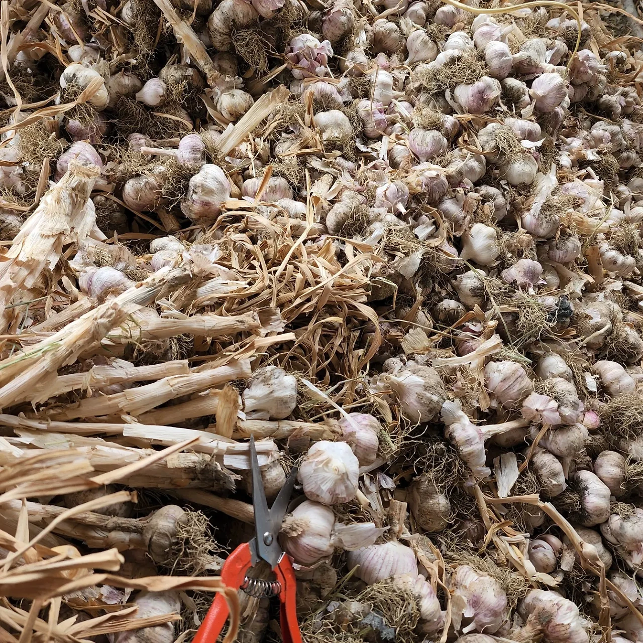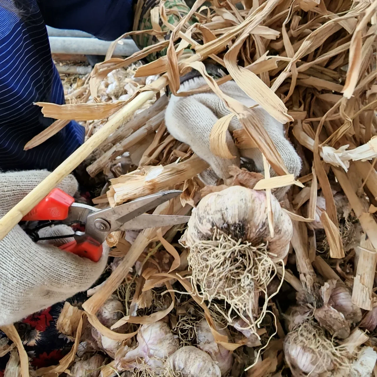 점심밥을 먹고 한숨 돌리자마자 마늘이 쌓인곳으로 갔다. 바로 집옆이라 쌓여있는 마늘들이 산을 이루고 있다. 이 마늘들 대가리 다 잘라야 나의 미션이 끝날듯하다. 게으름 피울세도 없다. 돌격! 마늘이 산처럼 쌓인들 다 잘라줄테다.!