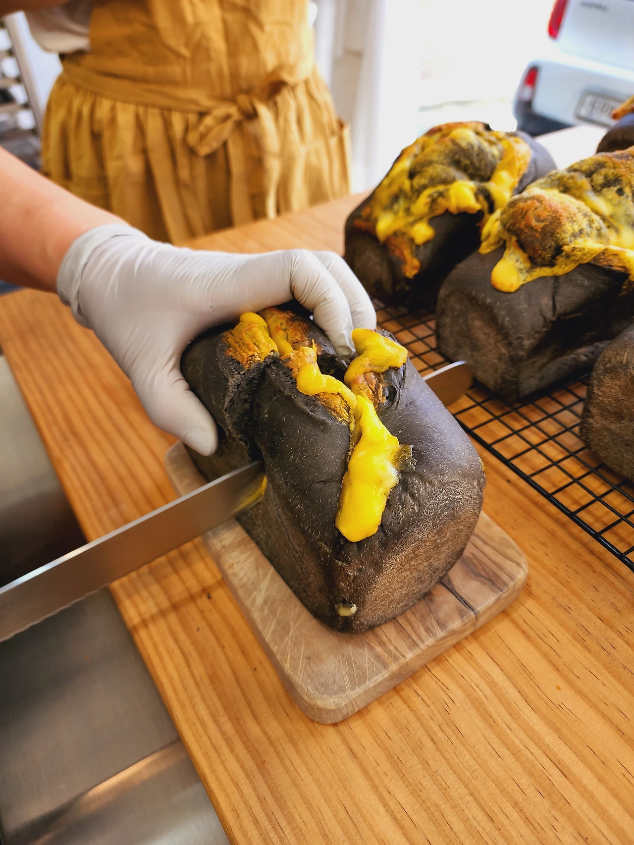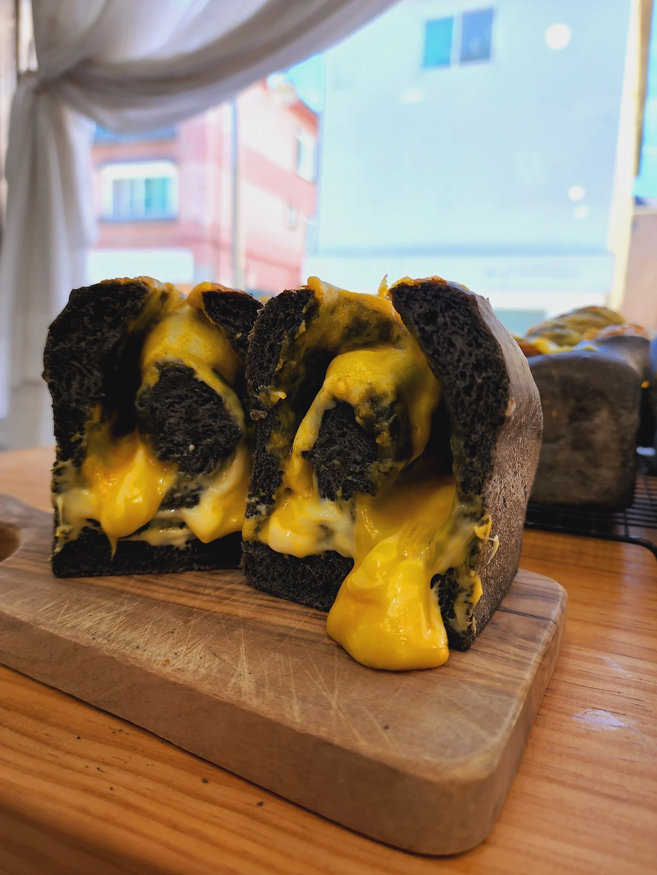 오징어먹물식빵엔 치즈듬뿍 담고,