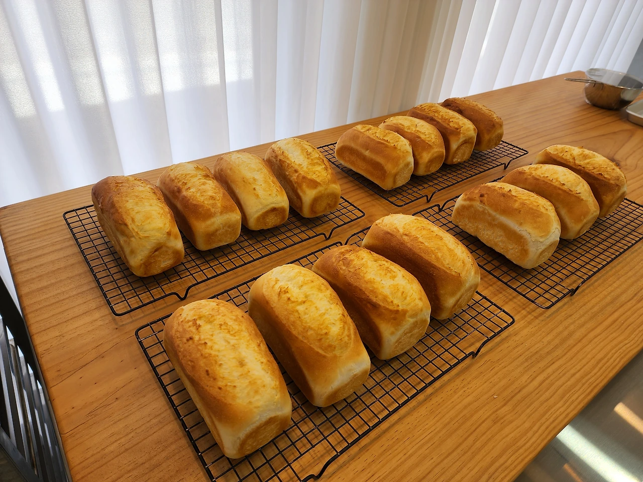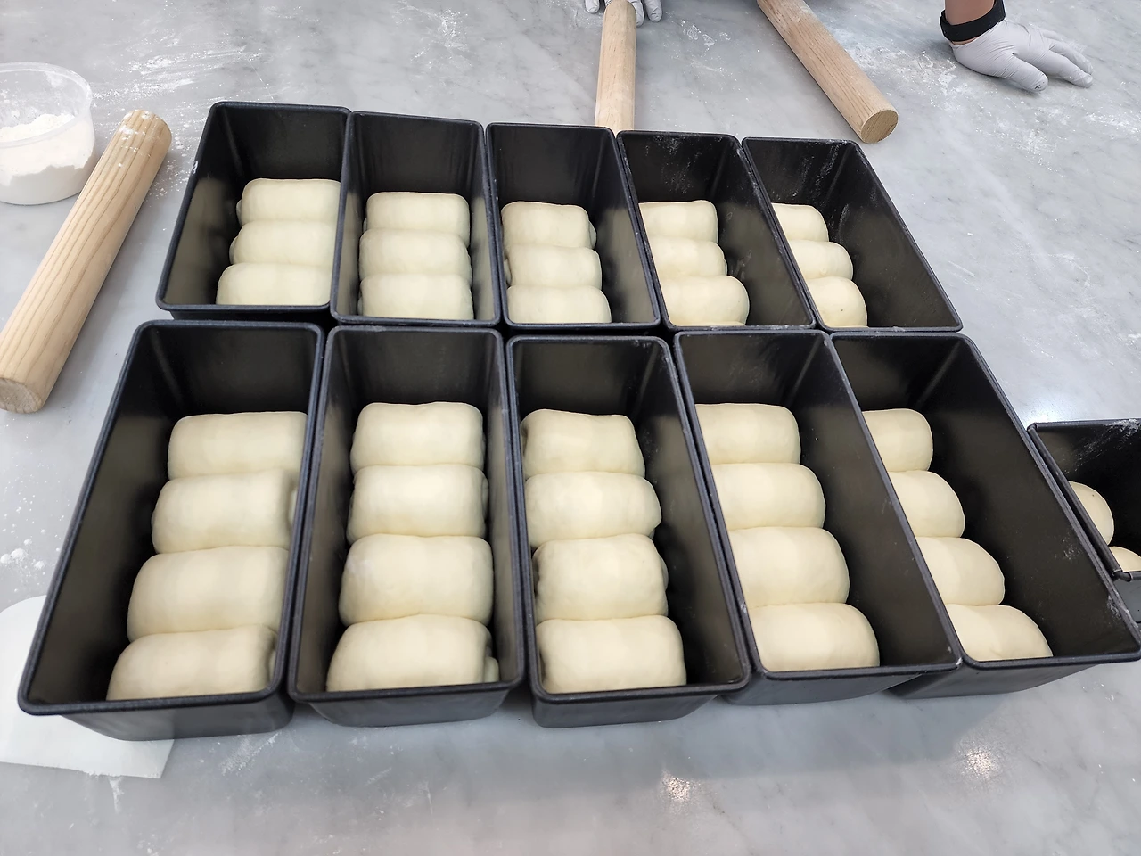 분할하여 둥글리기하고 팬닝까지 마치고 2차 발효에 들어간다. 식빵종류에 따라 팬끝까지 발효할지 팬아래 1센치까지 할지 숙지하고 대기한다.