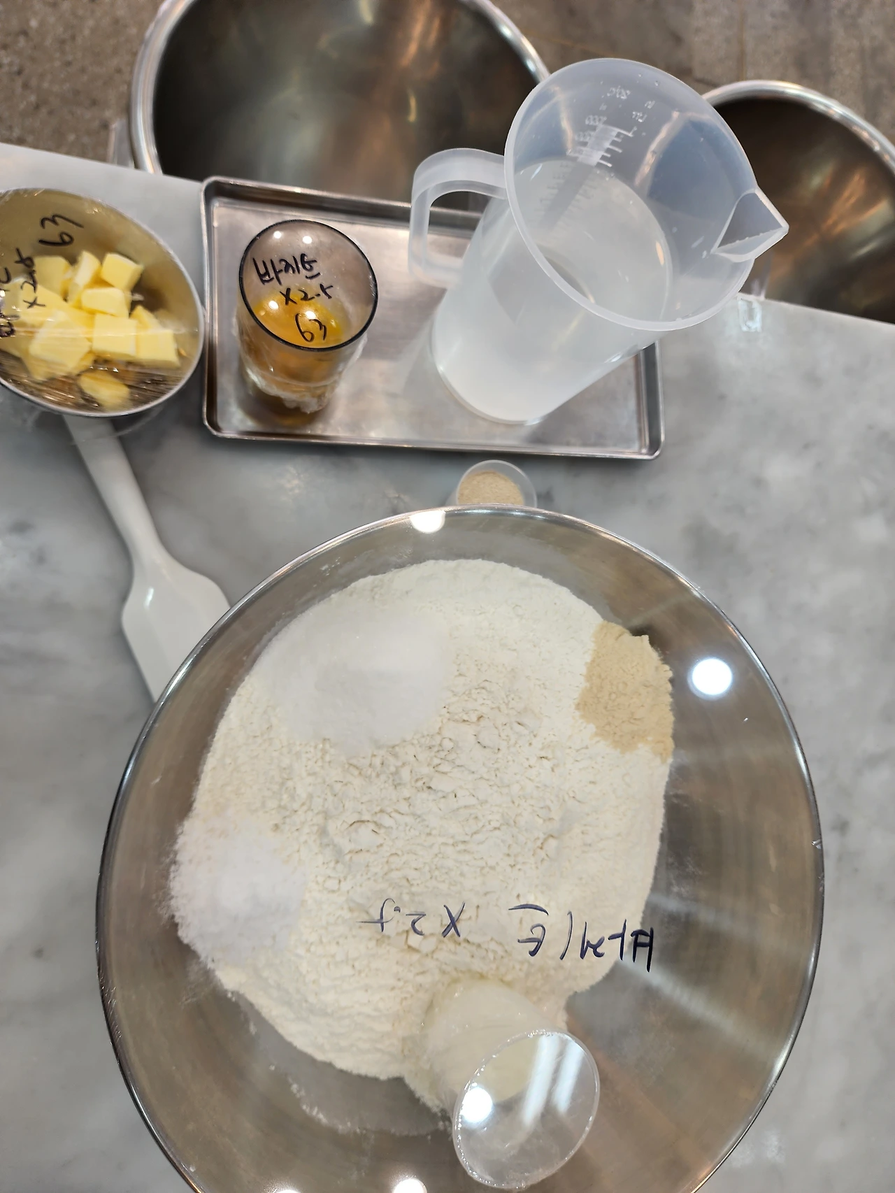 완성된 반죽은 랩핑하여 발효실에서 1차 발효를 해주고, 노련한 강사님의 진행에 일사천리로 척척 세가지 반죽을 완성시켰다.