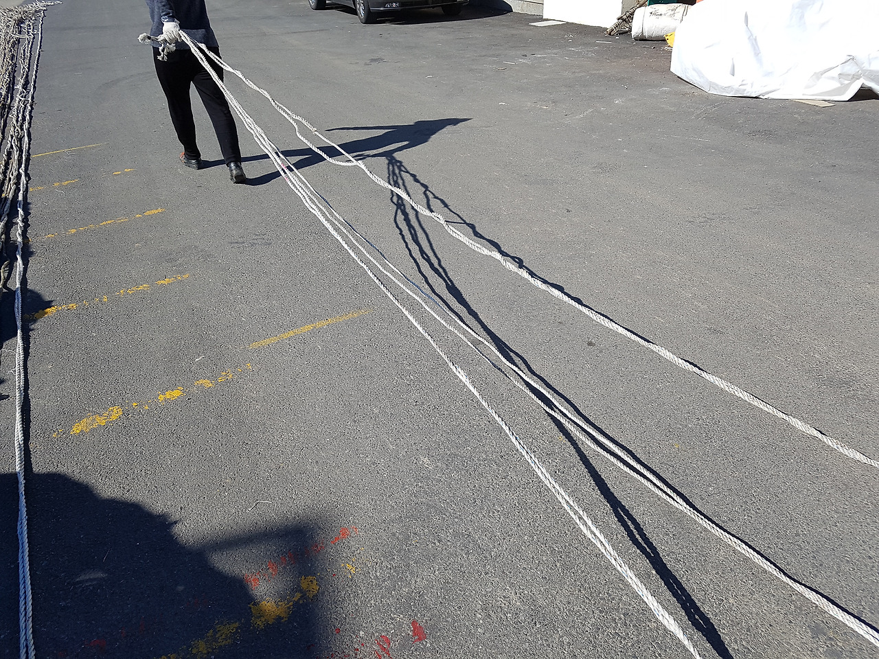겨울의 초입이어도 볕은 따가웠기에 잔뜩 찌푸린 눈가에 지는 주름은 고단함보단 행복을 담고 있었다. 그런 얼굴만큼이나 주름진 손에 쥐어진 줄을 통해 그들은 지금까지 살아왔을 것이다. 그 줄에 걸린 물고기와 미역을 팔아 자식들을 키웠을 것이고, 손주들에게 용돈도 주시지 않을까. 그만큼 오랜 세월 혹은 지금 나와 같은 젊은 시절의 꿈을 그 줄에 걸고 힘차게 끌어당기시진 않았을까. 10년, 20년... 나로선 가늠하기도 힘든 시간 동안 수많은 이유를 엮고 걷어 올리며 오늘까지 오셨기에 그 줄은 그분들의 삶 그 자체인 셈이다. 그래서 행복해 보였던 것 같다.