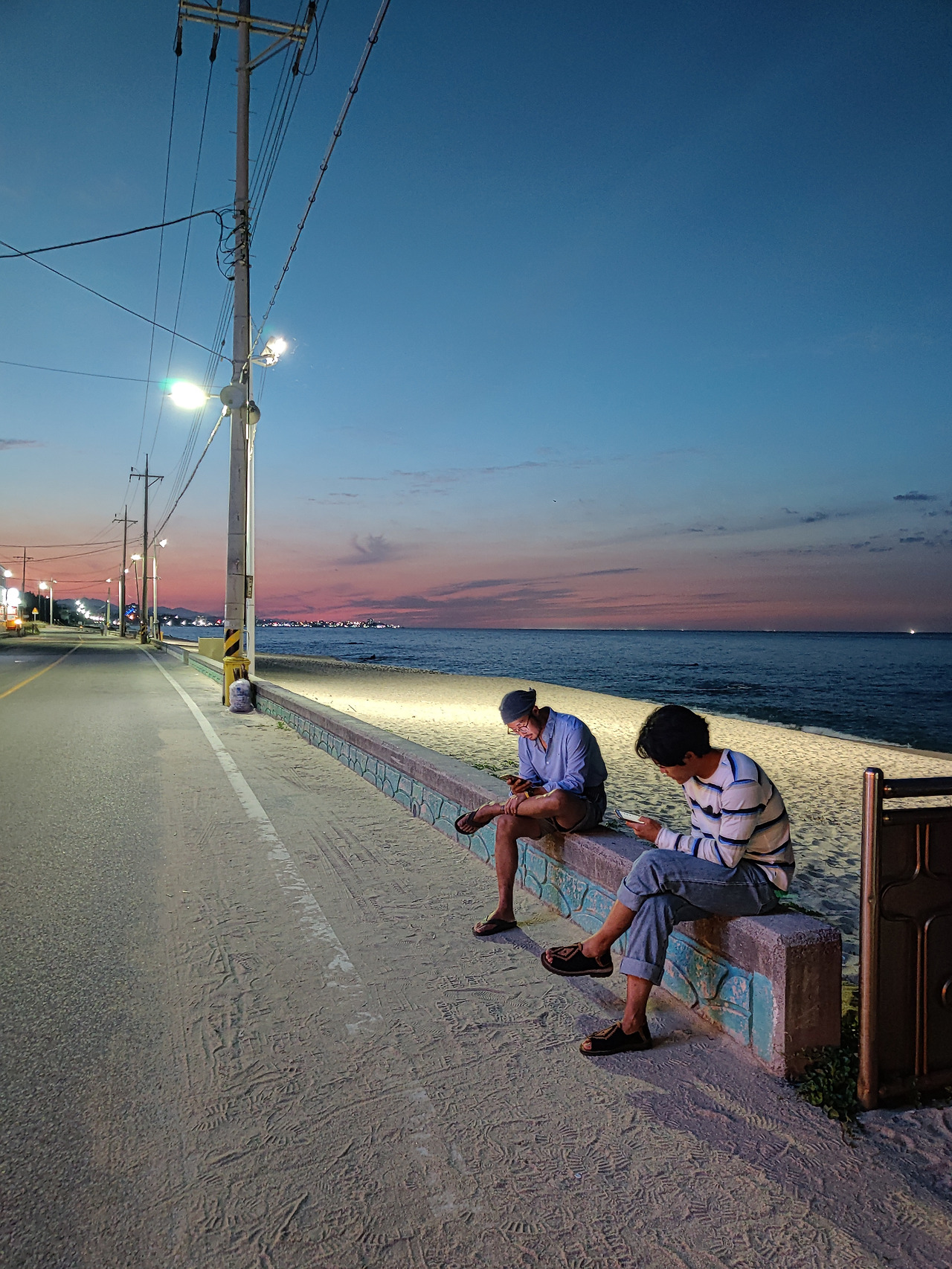접시에 담으며 혀로 입술 전체를 한번 닦아 본다. 그리고 바다가 잘 보이는 곳에 자리를 잡고 허겁지겁 먹기 시작한다. 여전히 누군가에겐 지적받는 젓가락질로 집어 먹는 닭 다리 살은 기억도 잘 나지 않는 옛 여인의 편지를 찾아 집어 드는 손짓과 비슷하다. 은은한 육즙을 상상하지만 막상 꺼내어 보면 전혀 신선하지 않는 오래된 냉동의 고독감, 맛. 뭐 그런 거.