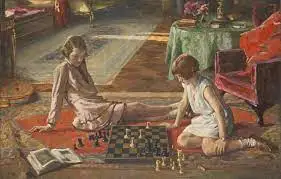 설명: 래버리의 그림은 체스 게임에 참여한 두 아이를 묘사한 것으로, 개인의 권리와 사회적 규범이 만나는 BSA 대 데일의 법적 충돌과 같은 전략적 전투를 상징합니다.