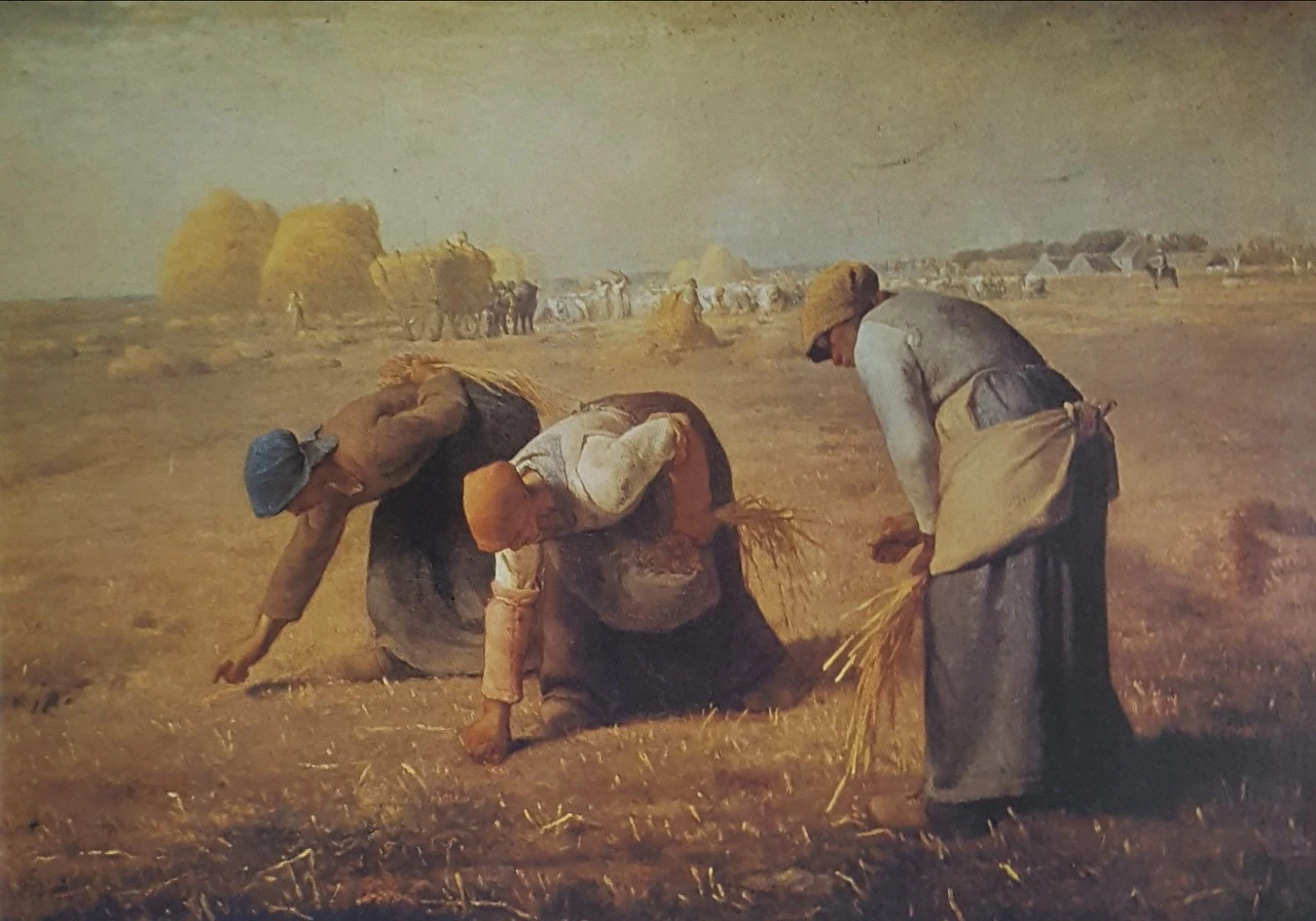 설명: 밭에서 곡식을 줍는 여인들을 묘사한 이 작품은 노동 계급의 고된 일상과 그들의 불평등한 삶을 조명하여 전태일의 노동운동에 대한 열정과 투쟁을 상징합니다.