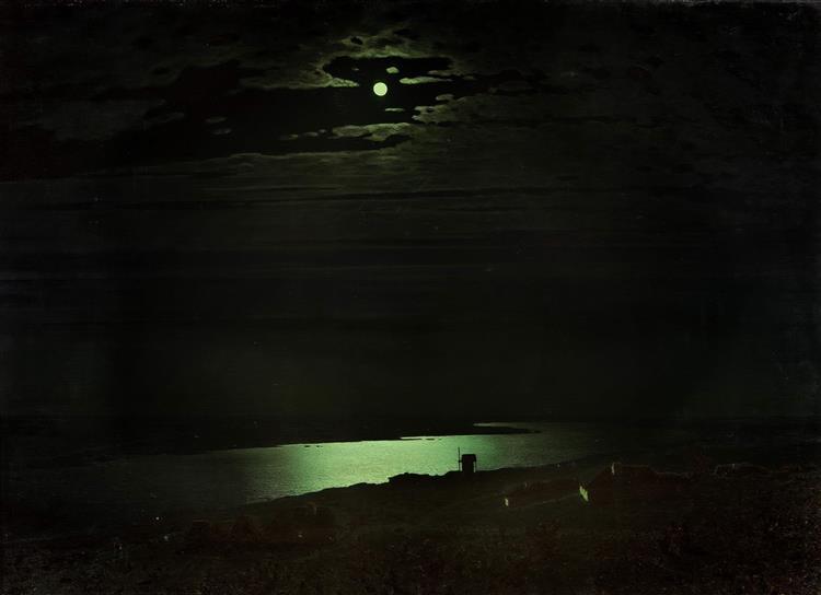 설명: 고요함과 신비로움으로 가득한 밤 풍경을 포착한 쿤치의 그림은 김수영 시의 성찰의 주제와 유사한 고독감을 불러일으킵니다.