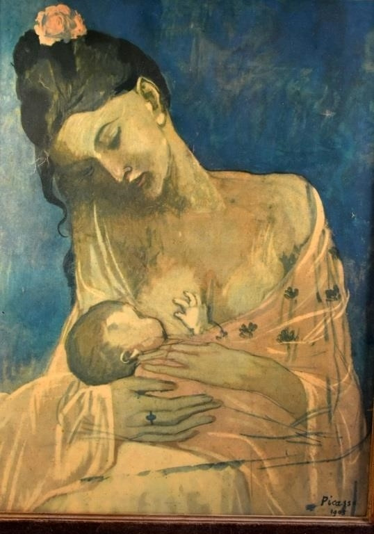 설명: 피카소의 부드러운 모성애 묘사는 엄마와 아이 사이의 친밀한 유대감을 포착하여 가족을 지원하고 출산을 장려하는 정책 뒤에 숨겨진 깊은 개인적 의미를 상기시켜 줍니다.