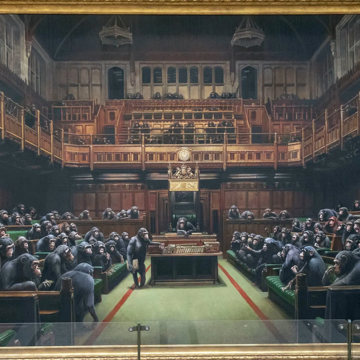 Devolved Parliament(위임된 의회), 2009 oil-on-canvas painting by Banksy