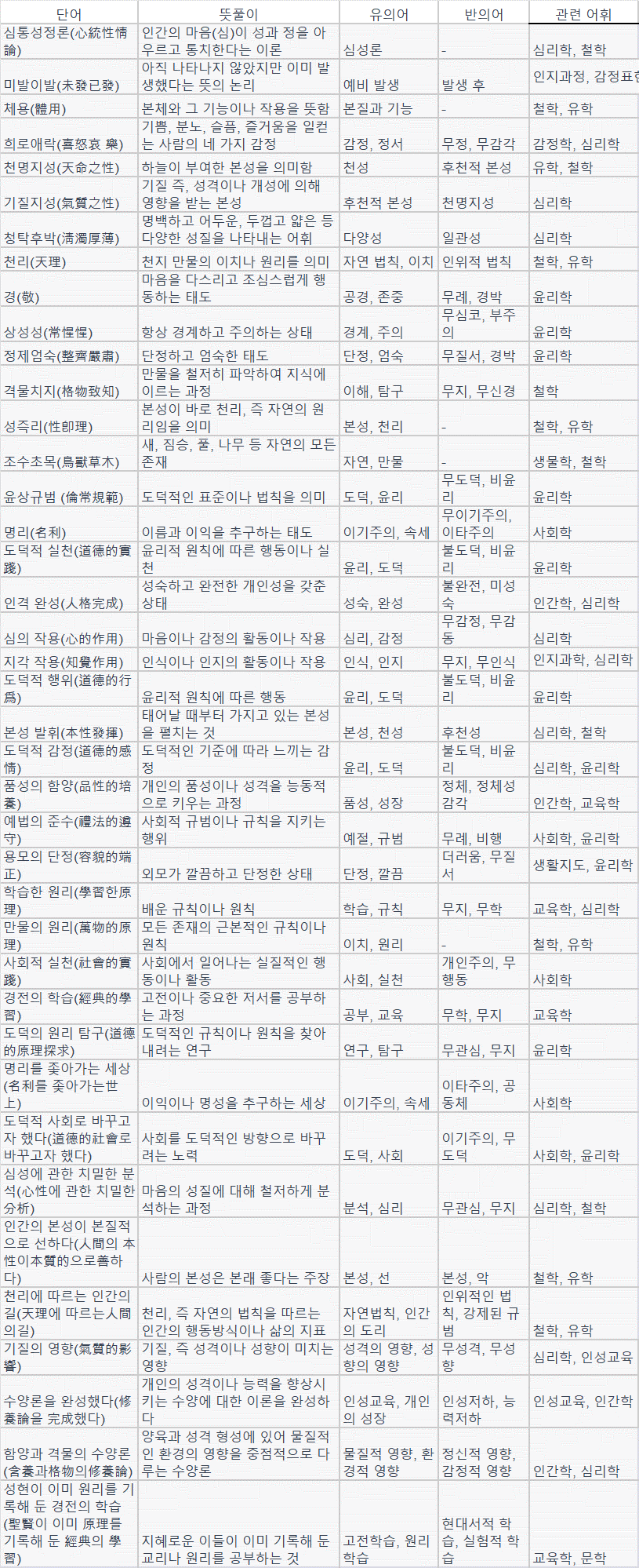 사전: 심통성정론(心通性情論): 마음-정신의 본질과 그것이 인간 행동에 미치는 영향에 관한 철학적 이론.