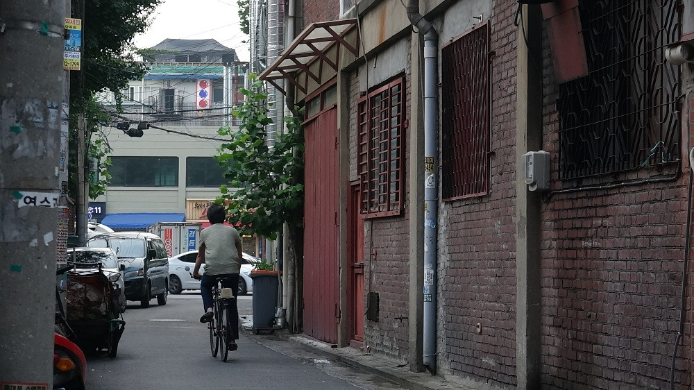 성수동 공장지대는 지금까지 봐왔던 공장과는 다른 모습이었다. 그간 봐왔던 공장들은 문과 외벽이 얇은 철판으로 만들어져 있는 회색 공장들이 대다수였다. 그런데 이곳의 문은 나무로 만들어져 있었다. 이런 모습의 공장은 시대극에서나 봤지 실제로는 처음이었다. 나무로 된 문에는 시간이 켜켜이 쌓여있었다.