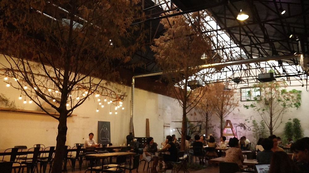 '인더스트리얼 인테리어'가 미디어에 많이 나오던 시기가 있었다. 그때 본 인테리어는 차가운 느낌이 강했다. 검은색, 은색, 흰색, 회색 등 무채색이 강하게 드러났다. 그런데 이곳은 따뜻한 느낌이었다. 차이라면 나무가 많이 쓰이고 주황색 조명을 사용한 것이 아닐까 싶었다.