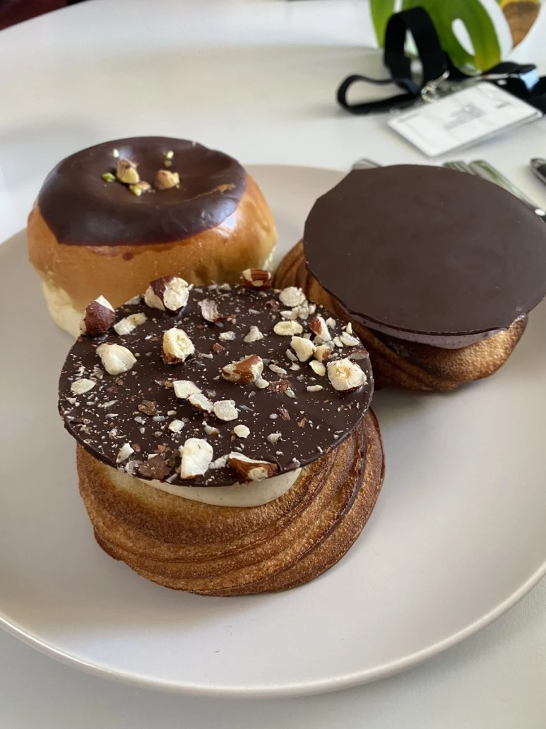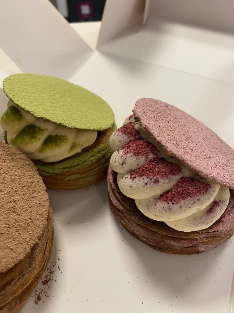다른 두 개는 각각 블랙커런트 크림, 커피크림 맛이고 페스츄리 베이스에 위에 바삭한 초콜릿이 덮어져 있다. 친구들 평으로 전통식은 쏘쏘였고, 커피맛이 제일 맛있다고 했다.