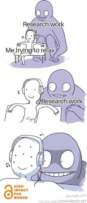 그러나, 결과적으로 말하면 박사과정의 가장 큰 목적 달성은 박사학위 취득이다. 사실 그래서 내가 얻고 싶은 세 번째 역량은 프로젝트 관리 역량이다. 박사과정은 3년 혹은 4년이라는 나에게 주어진 시간에 맞추어 논문이라는 결과물을 제출해야 하는 일련의 프로젝트이다. 누군가 나를 강제하는 사람이 없기에 스스로 관리하지 않으면, 마냥 늘어질 수 있는 시간이기도 하다. 페이스북의 박사과정생 그룹에는 박사과정생의 '미룸(procrastination)'을 표현하는 밈(meme)들이 넘쳐난다.