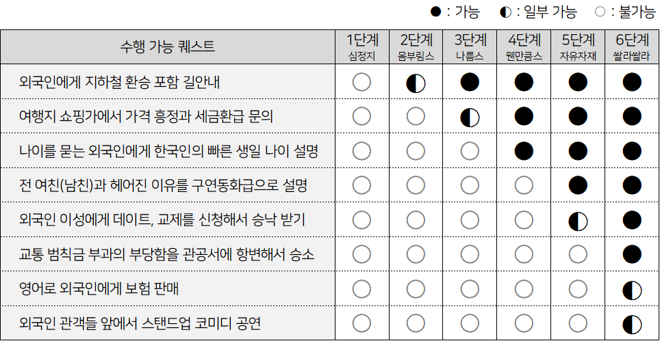 아무튼, 위와 같은 퀘스트 방식으로 영어실력을 판별한다면 그야말로 실용적인 측정이 가능하지 않을까 생각해 본다.