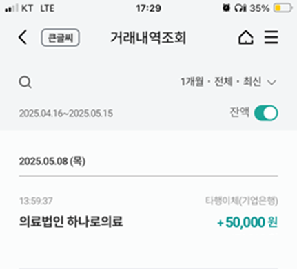 정말로 통장에 현금 5만원이 입금되었습니다.