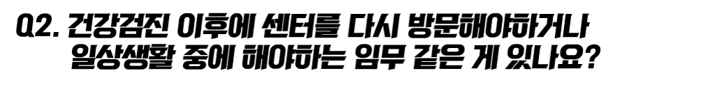 검진센터에 온 것은 건강검진을 받으러 올 일 밖에 없는데, 나중에라도 이것 때문에 다시 와야한다면 번거롭잖아요. 그리고 무슨 임상실험 참가자 같은 경우 매일같이 정해진 조건을 충족해야하는 임무 같은 것도 있던데, 이것도 참여하면 그런 게 아닌가 확인해야했습니다.