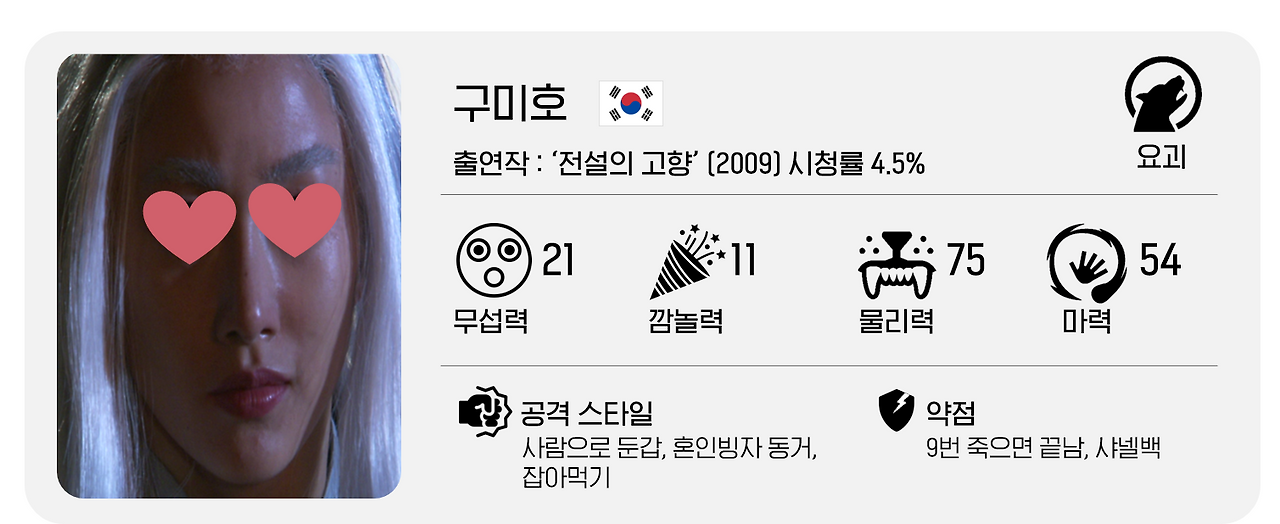 · 구미호 : TV시리즈 '전설의 고향 2009'의 꼬리 아홉 개 여우