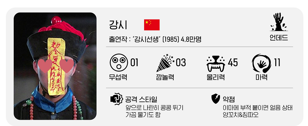 · 강시 : 언제 적 강시를 불러왔냐 싶겠지만 그렇다. 그 강시 맞다.