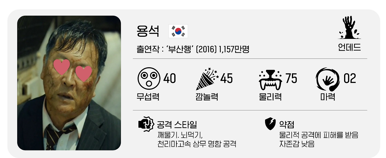 · 용석 : 영화 '부산행' 속 좀비가 된 빌런