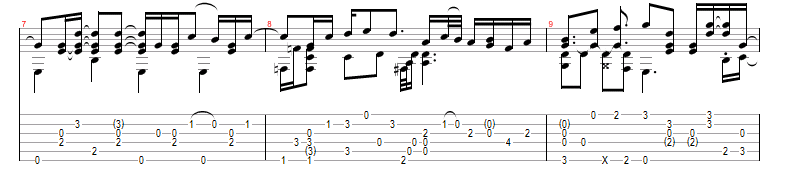 그날 일렉기타의 매력에 푹 빠졌던 필자는 그 이후로 더 이상 통기타 코드집을 펼쳐보지 않았다. 대신 일렉기타를 연주할 때 보는 전용 타브(Tab) 악보를 구하기 위해 대형 서점을 돌아다녔다. 타브 악보란, 오선지 대신 기타의 6줄을 의미하는 육선지 위에 프렛을 표시하는 숫자가 표시된 악보를 말한다.