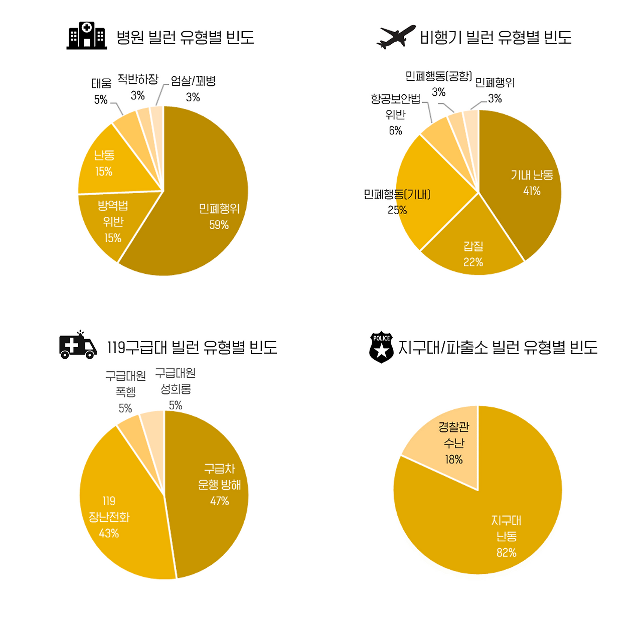 위중한 환자를 이송하는 중에 택시 빌런에 가로막혀 골든타임을 놓친 사례가 최근에 보도된 바 있다. 결국 그 환자는 목숨을 잃고 택시 빌런은 처벌을 받게 되었지만, 끝까지 반성하는 것 같지는 않았다. 구급대원들은 그 외에도 장난전화, 폭행, 성희롱에까지 노출되어 있다.