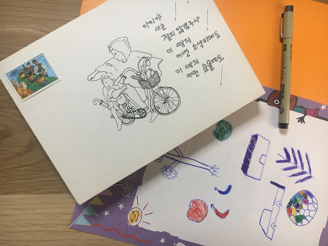 세상에 좋은 이별이 없는 것이라면, 아이에게 좋은 이사라는 것도 없을 것 같았다. 아프리카에서 사는 아이가 이사를 가야 할 이유가 뭐가 있을까? 안 좋은 일로 마을에서 쫓겨나게 된 건 아닐까. 아이가 아프거나 부모에게 무슨 일이 생긴 걸까? 괜한 걱정에 휩싸인 채 그동안 아이가 보낸 카드를 꺼내보았다. 카드에는 연필로 꾹꾹 눌러 그린 집이나 나뭇잎 같은 것들이 그려져 있었고, ‘저는 축구를 좋아해요’ ‘학교에 다녀요’와 같은 짧은 영어가 적혀 있었다. 후원자에게 보내느라 누군가의 도움을 받아 적었을 그 말들에 괜히 미안한 마음이 들기도 했지만, 한편 이 아이는 집을 이렇게 그리는구나. 공을 차며 노는구나. 하는 반가운 마음도 들었던 것이 사실이다.