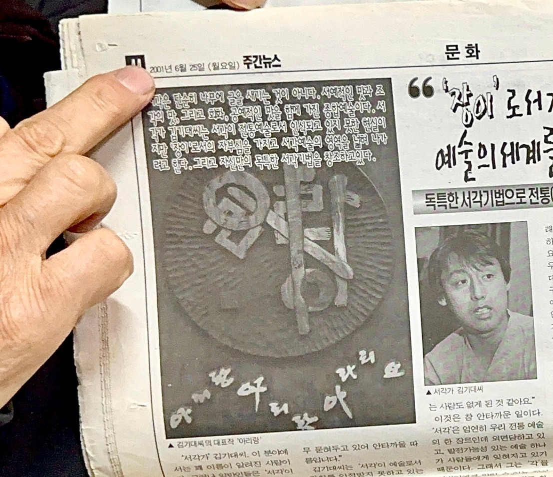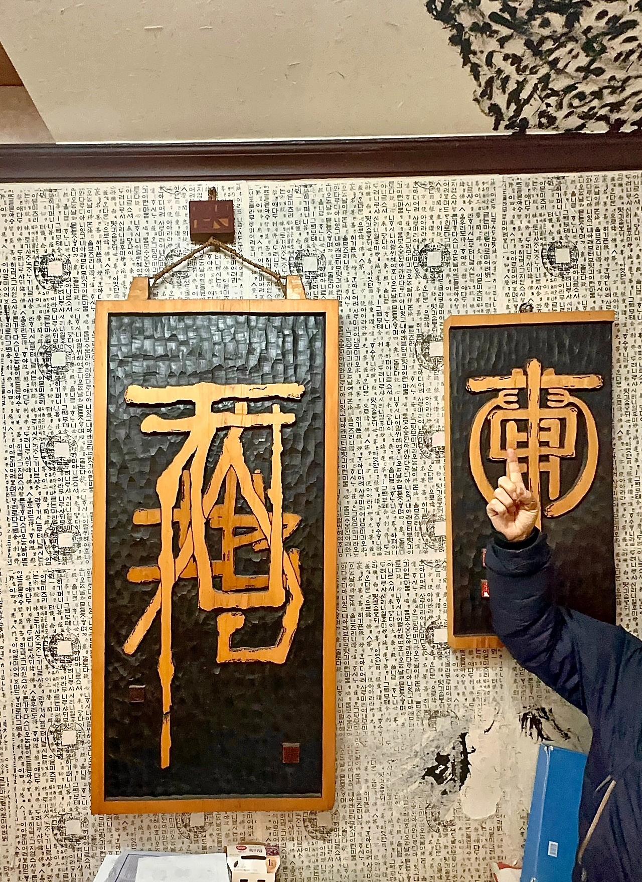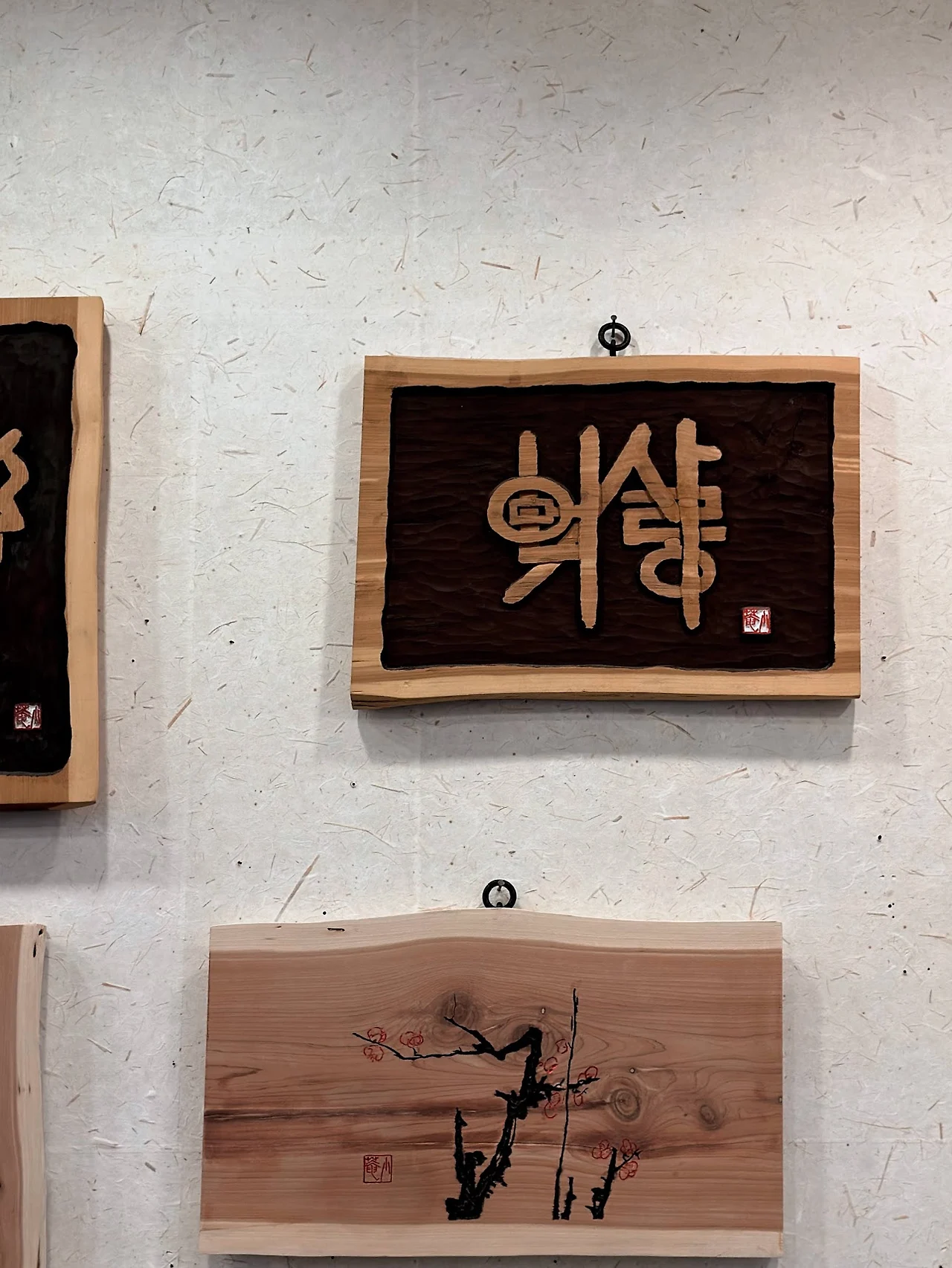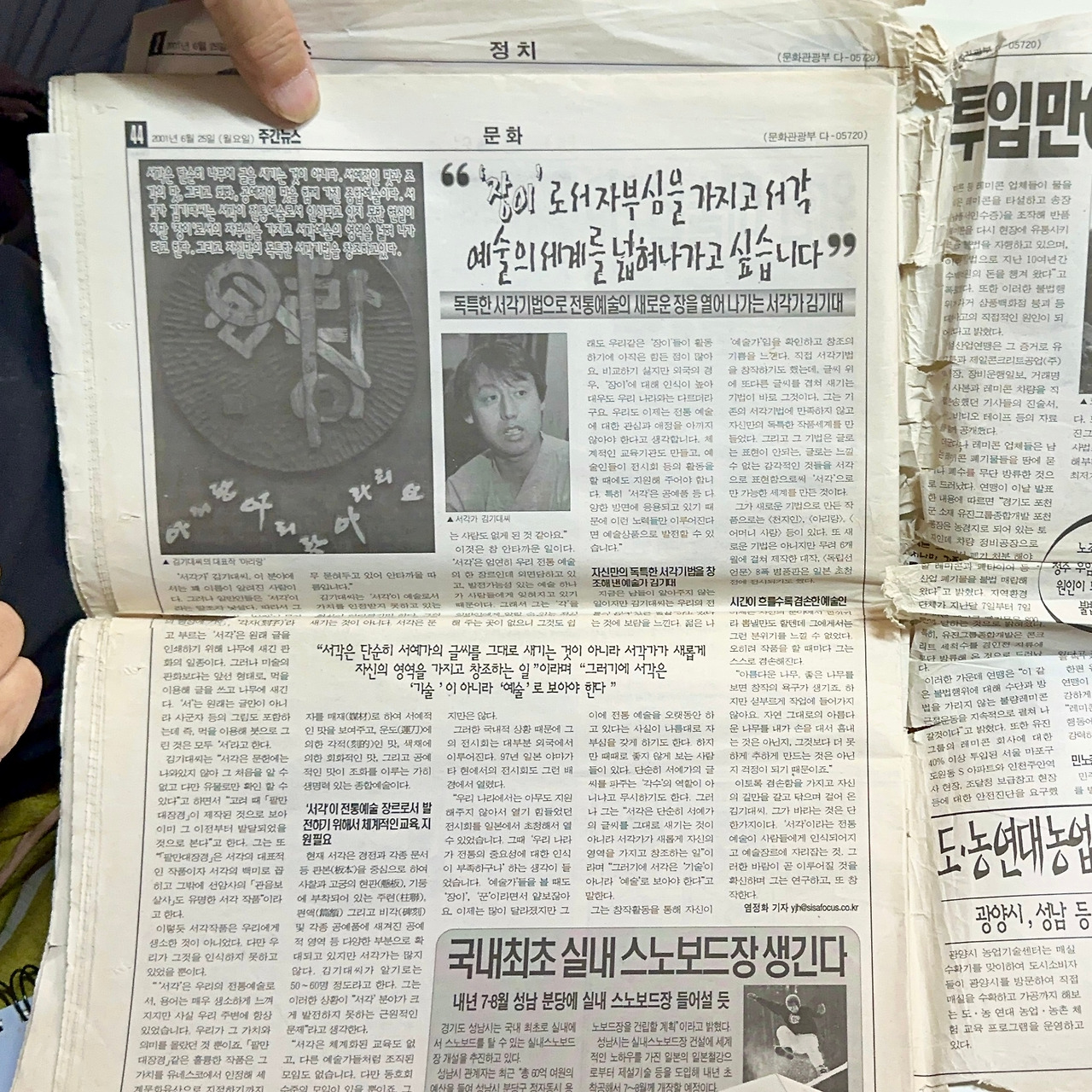 일본에서도 초청 전으로 불러주고 그럴 때가 있었어. 글씨를 세 개를 합쳤던 서각은 내가 최초였지. 그런데, 내가 정보를 너무 많이 주나. 하하. 내가 그때 자료를 더 보여줄게.