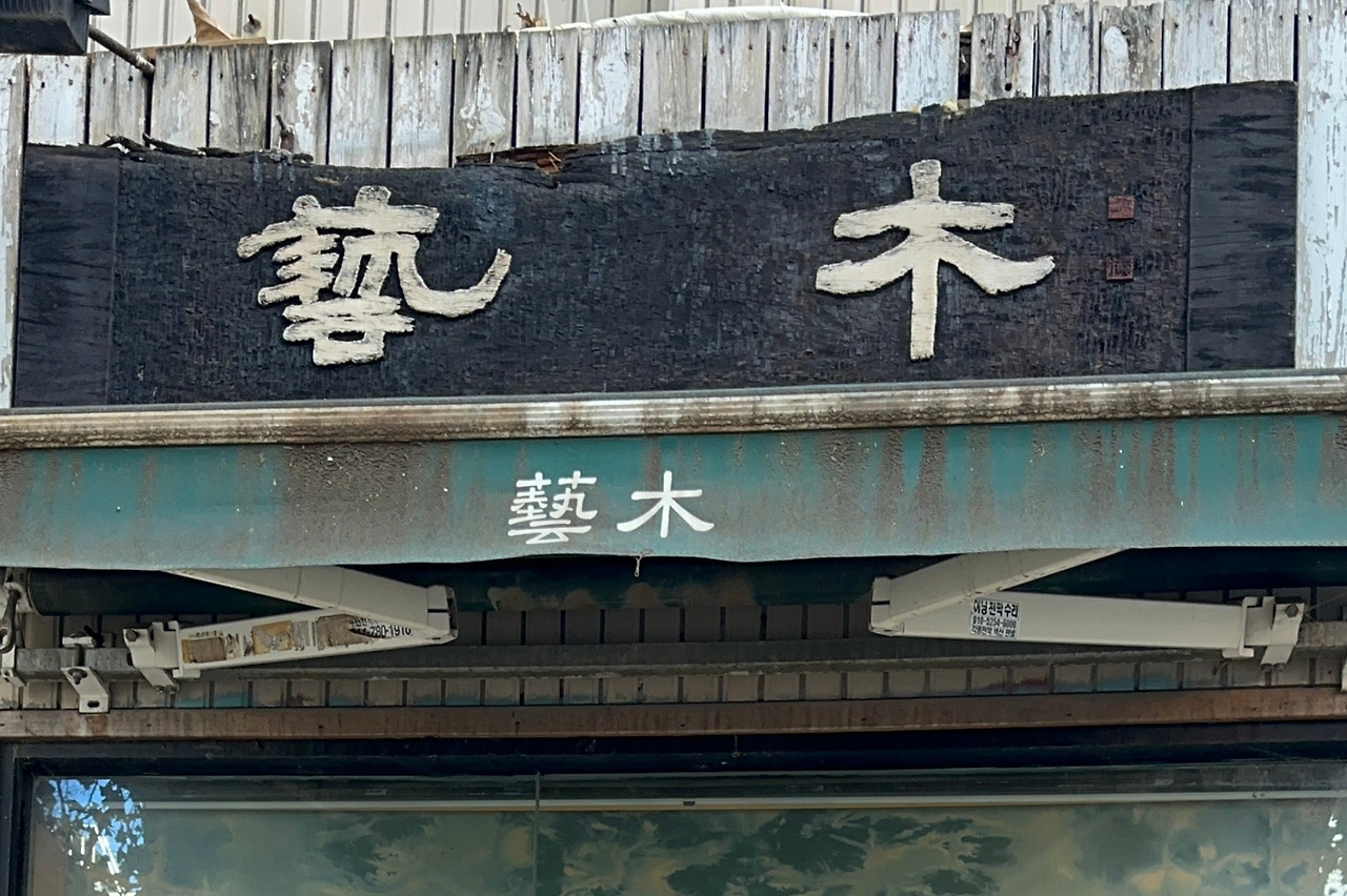 이 간판이 30년 된 거야. 간판이 이제는 다 썩었지. 원래 일자였는데. 보면 나무가 다 주저앉았어.