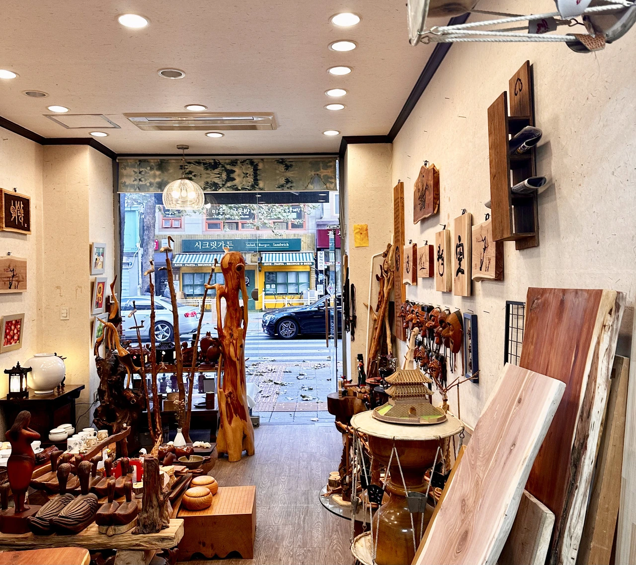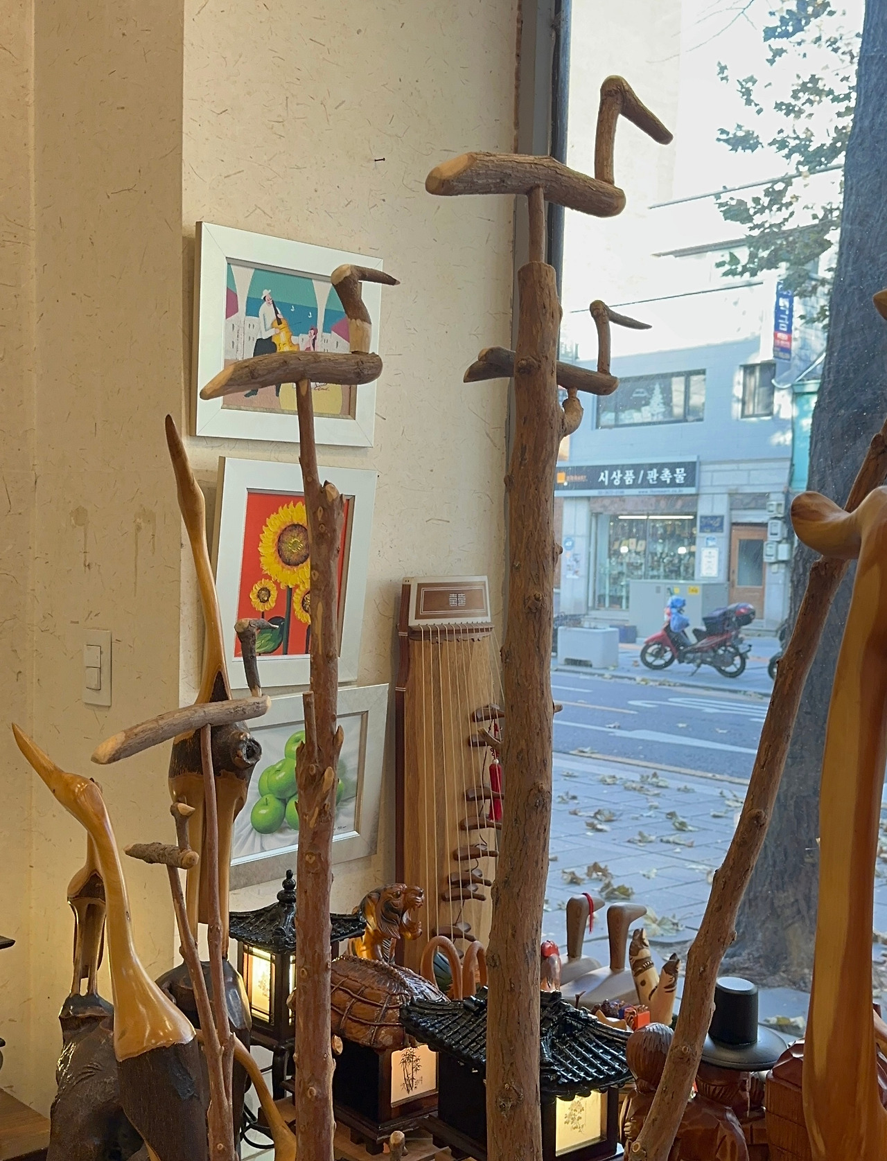 내가 1990년에 가게를 열었어. 인사동에서 종로로 온 거야. 예전엔 스타벅스 인사점 -최초로 한글 간판을 쓴 곳 알지 - 내 가게는 그 맞은편이었어. 이사 온 지는 10년이 됐지. 여기는 세가 그 전 1/4 정도 되는 거 같아.
