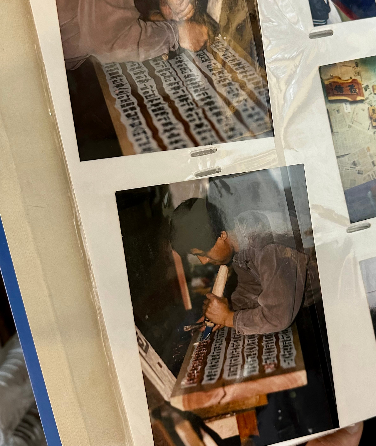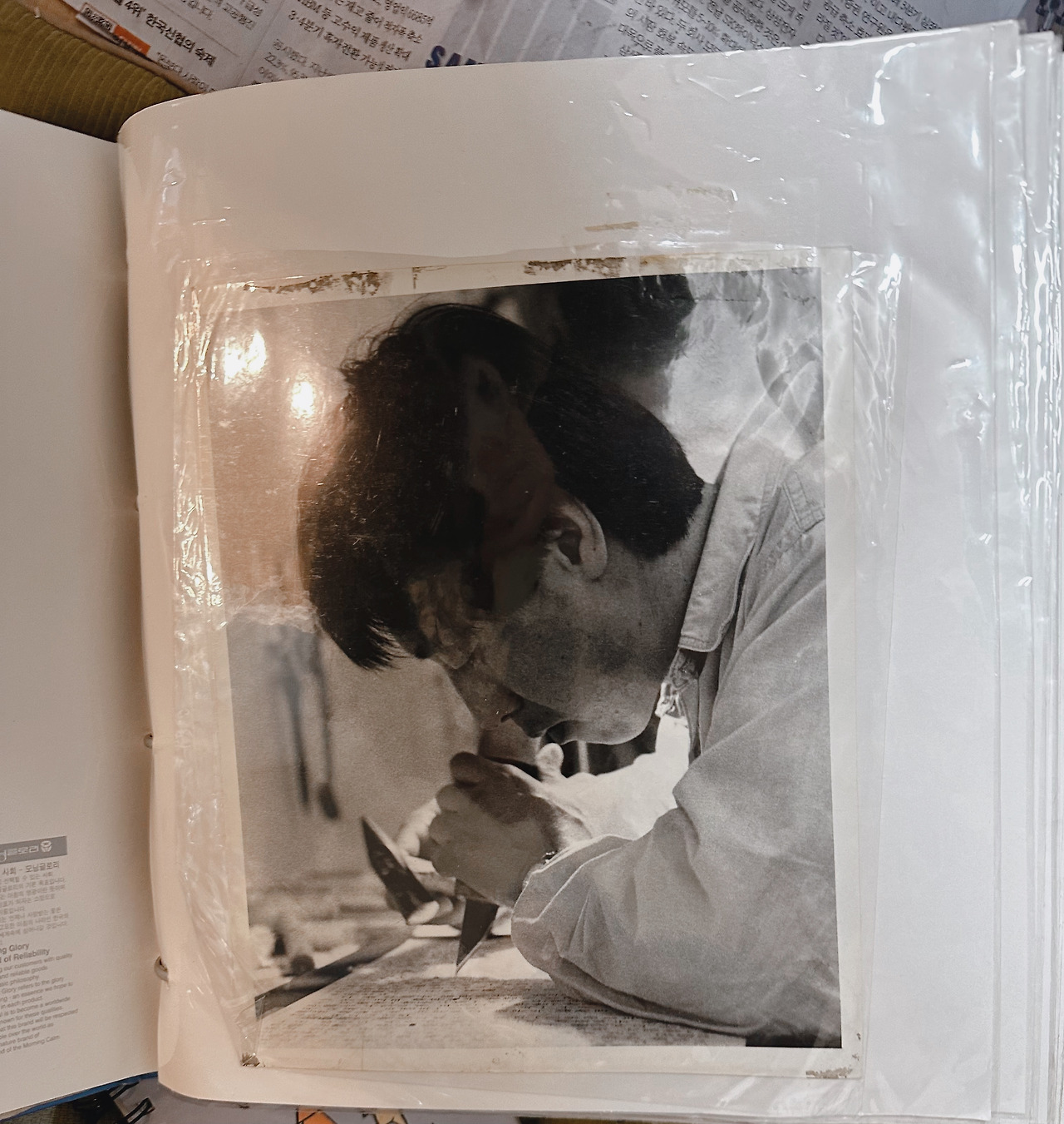 서각은 4-5년 그전부터 했었어. 팔만대장경 경판도 팠어. 이건 경기도립박물관 개관하면서, 외주를 준거야. 독립선언문 경판도. 이건 덕산식품 회장이 부탁을 했어. 제일교포 3세인데, 오사카에 재일동포 역사를 보여주겠다고 하셨거든. 유명할 거야. 당시에 3000만 원에 차 한 대를 받았어. 이것도 작업에 꼬박 일 년 걸렸지.
