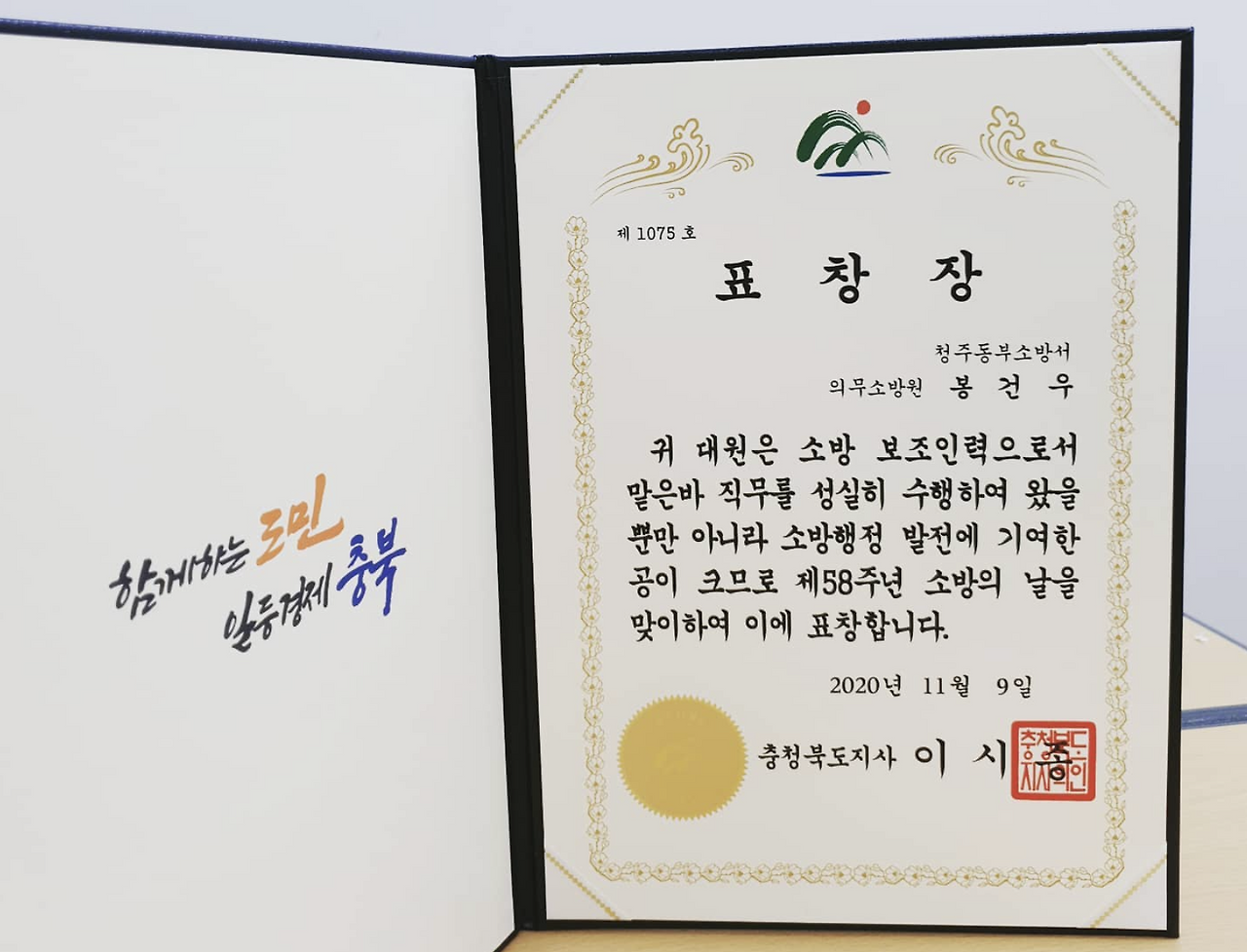 19년도에 의무소방으로 갔거든요. 이유는 두 가진데, 그 당시 제복공무원을 흠모했고요.