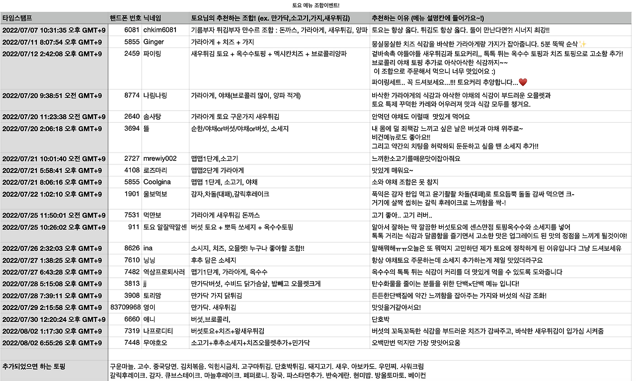 그게 저희 세 번째 시도했던 브랜드예요. 저희는 1인 가정을 타깃으로, 5가지 집밥 메인메뉴를 개발했죠.고객 반응들 중 후기에 종종 본인이름이 나왔다 하신 분들도 계셨어요. 그리고 제육볶음과 김치찌개 수요가 있더라구요. 여기에 사연을 받아 그들의 이름을 넣기도 했어요.