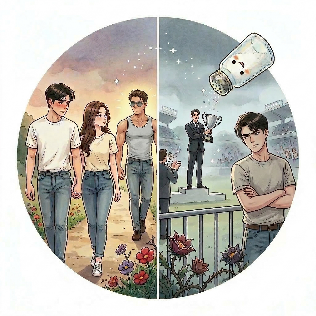 질투의 본질은 타인이 우월해서 생기는 것만은 아닙니다. 그것은 '내가 대체될 수 있다는 공포', 그리고 '내가 충분하지 않다는 느낌'이 타인이라는 거울을 통해 드러나는 순간입니다. 그래서 질투는 타인을 무너뜨리기 전에 이미 나를 먼저 무너뜨리고 있는 감정일 때가 많습니다.
