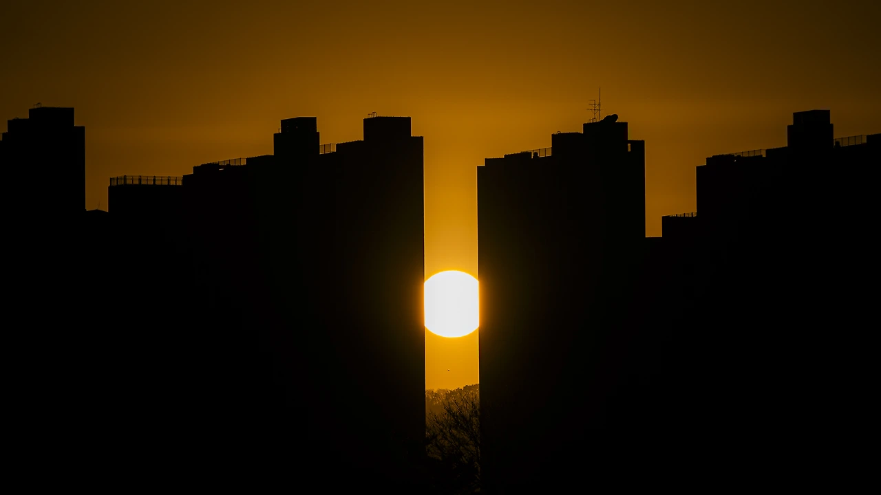 석양이었다. 그저 흔한 해 질 녘이 아니었다. 석양은 춘천우두이지더원시그니처 건물들 사이로 슬며시 얼굴을 내밀더니, 마치 오랜만에 마주한 친구처럼 해사한 미소로 "까꿍!" 하고 인사를 건네는 듯했다. 그 순간의 빛은 너무도 따스했고, 그 사이로 흐르는 공기마저 금빛으로 물들어 있었다.