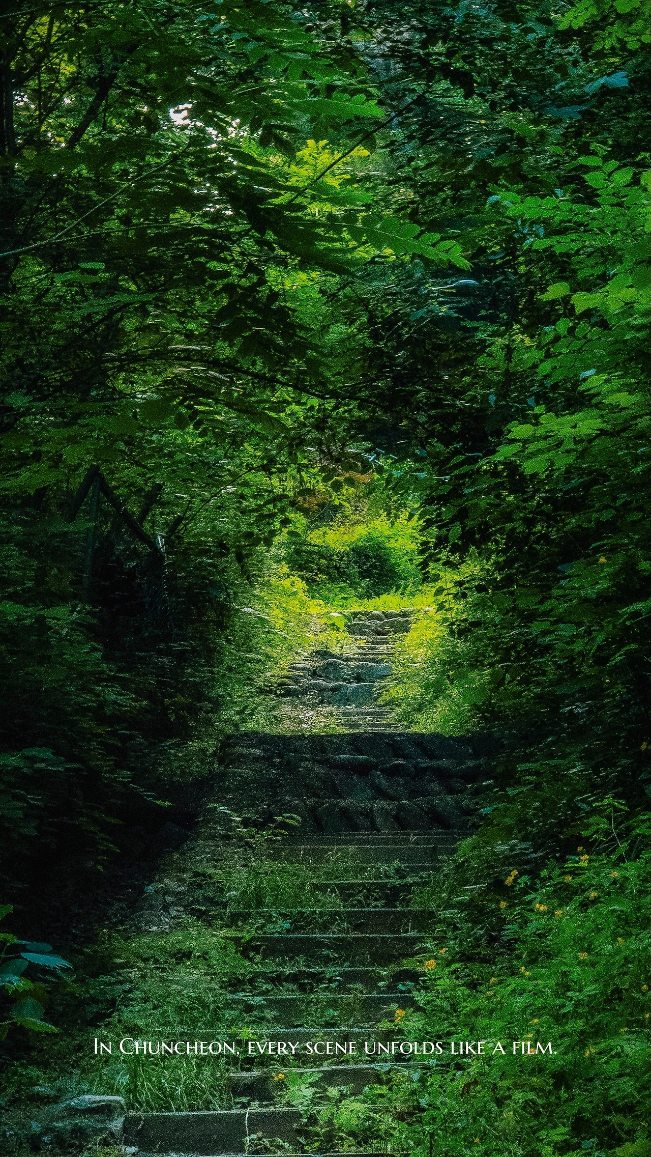단순한 지름길이 아닌, 기분을 전환시키는 장면 전환의 통로. 일상의 회색 화면에서 한순간 색이 바뀌는 전환점 같은 곳. 단지 도서관으로 향하는 길이 아니라 내면으로 들어가는 길이며, 잊고 지낸 감정과 조우하게 되는 길. 이 계단 하나만으로도 춘천이라는 도시가 생각보다 훨씬 더 마법 같은 곳이라는 것을 많은 사람들에게 알리고 싶다.