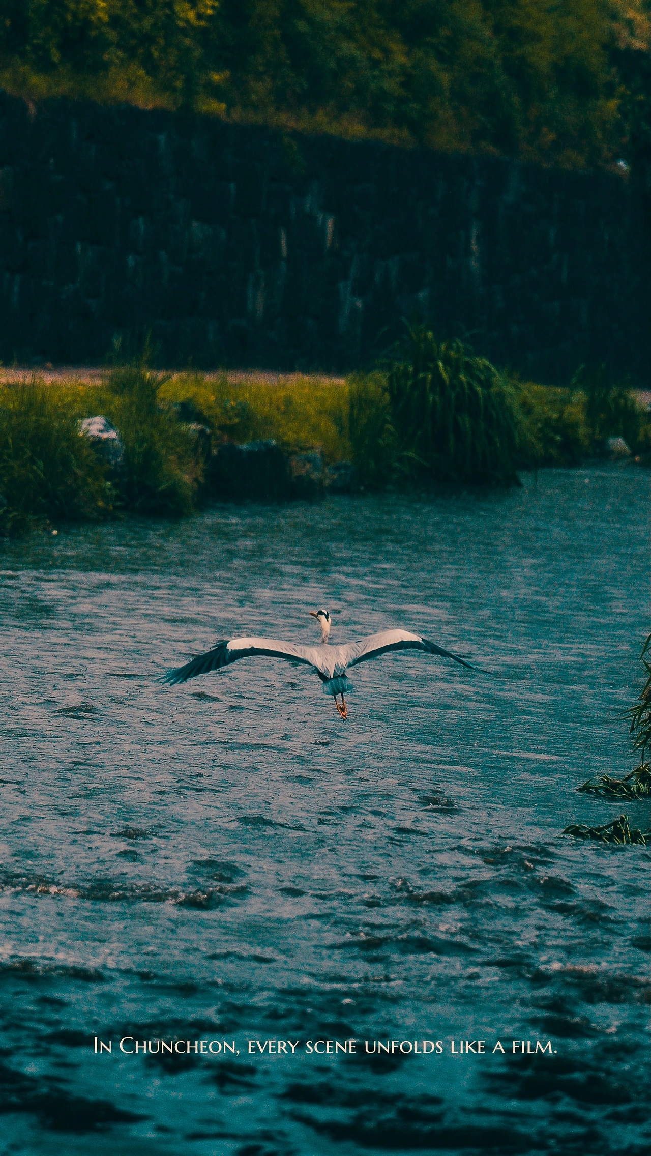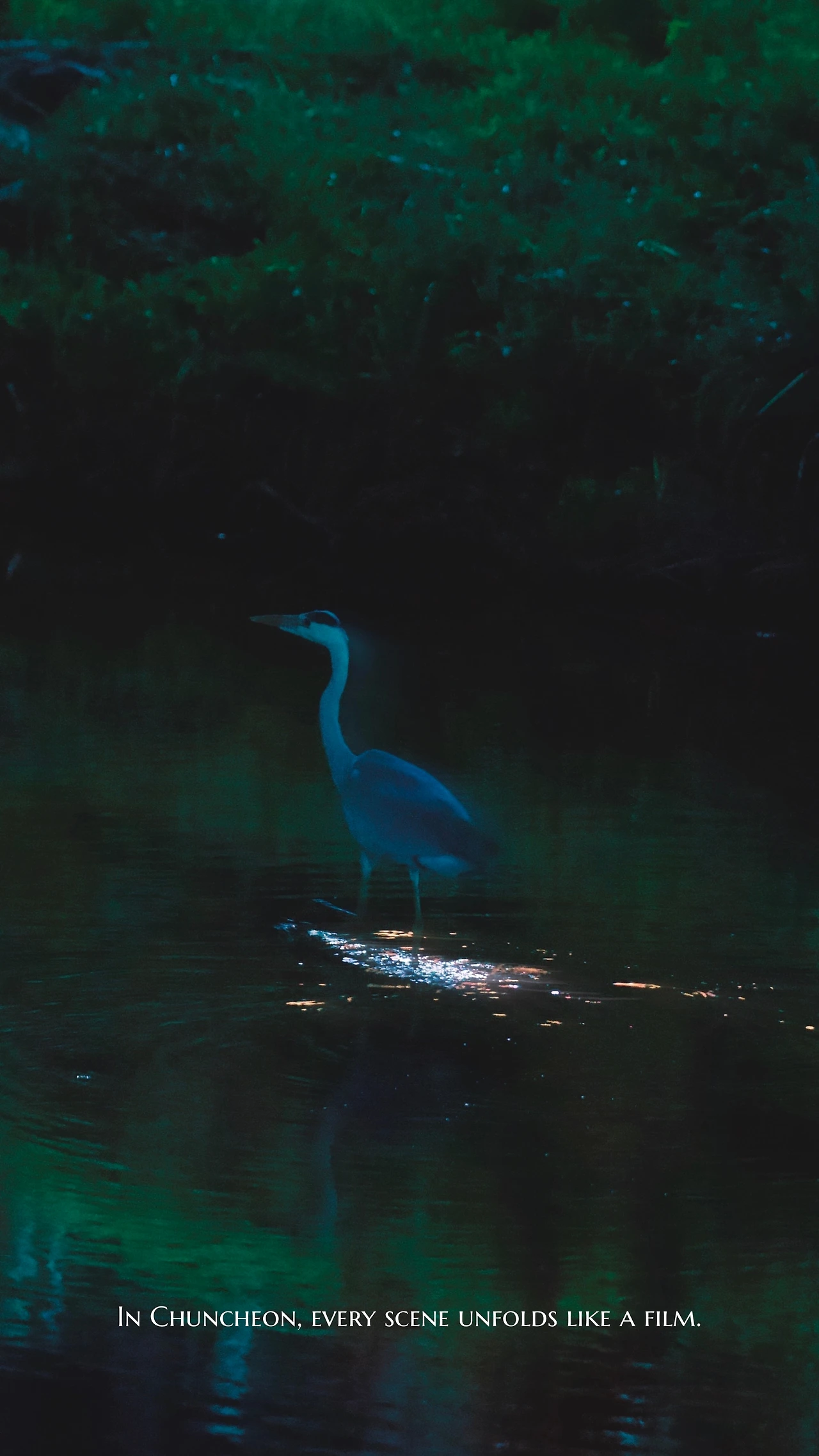 빛과 왜가리, 물과 그림자가 한데 어우러진 짧은 장면. 가끔은 이렇게 어둠 속을 걷는 것도 괜찮을 것 같다. 춘천의 밤은 낮이 담을 수 없는 풍경들을 은밀히 펼쳐 보이니까.