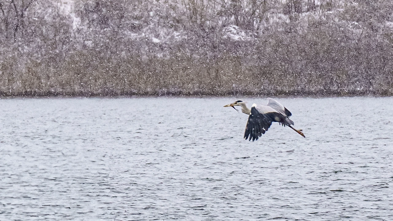 눈발이 흩날리던 겨울 오후, 소양강 위를 가로지르며 날아오르는 왜가리. 입에는 갓 잡은 물고기 한 마리가 매달려 있었다. 초점이 흐릿해서 아쉬운 마음이 가득. 비록 사진은 완벽하지 않아도 그날의 바람과 살갗을 파고들던 차가운 공기의 감촉, 눈송이 아래 사냥에 성공한 단단한 생명력은 선명하게 남았다.