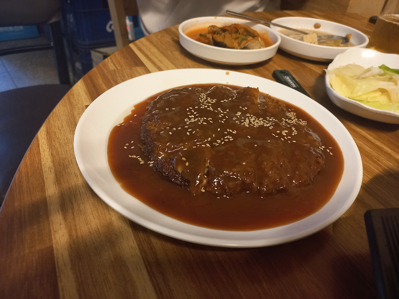 치즈돈가스는 조금 많이 튀겨졌다. 돈가스 과자를 먹는 느낌이었다. 맛없는 돈가스는 없다!
