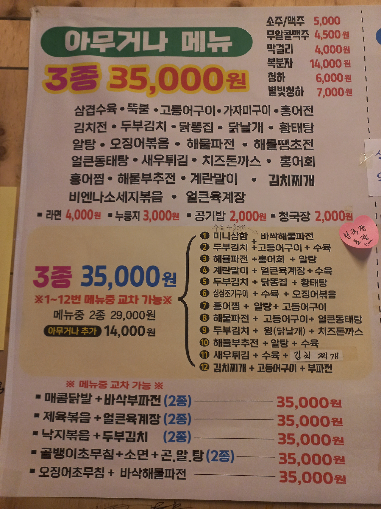 가격을 제외하면 강남해물포차의 아우라는 4년 전 그대로였다. 여전히 푸짐했던 기본안주, 여전히 냄새 없이 구수한 청국장, 여전한 아무거나 메뉴를 두고 재차 충성서약을 맺었다.