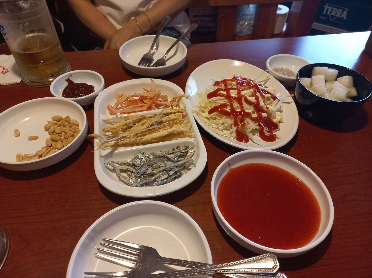 우선, 멸치를 고추장에 찍어 한입 문다. 처음엔 맛있지만 이윽고 약간의 씁쓸함과 텁텁함이 올라온다. 이때 생맥주를 한 모금 마셔 멸치의 씁쓸함과 텁텁함을 잠재우고 땅콩으로 고소한 마무리를 맞이한다. 그리고 후라이드 나올 때까지 이를 반복한다. (병맥주에도 씁쓸함과 텁텁함이 다소 녹아 있기에 병맥주가 아닌 생맥주를 추천한다.) 그러다보면 ‘황금빛의 고소한 노란색’을 가진 후라이드가 상에 오를 것이다.