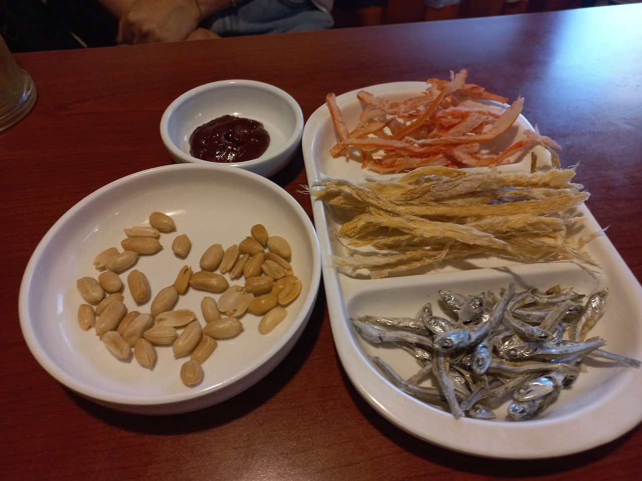 오가호프통닭에서는 주문을 받은 후 닭을 튀기기에 후라이드를 시켰다면 생맥주도 시키길 권한다. 치맥이라는 ‘주입식 공식’ 때문이 아니다. 후라이드와 마주할 기다림을 생맥주와 함께 내어지는 멸치와 고추장, 북어포, 오징어채, 땅콩의 맛으로 채우라는 이야기다.