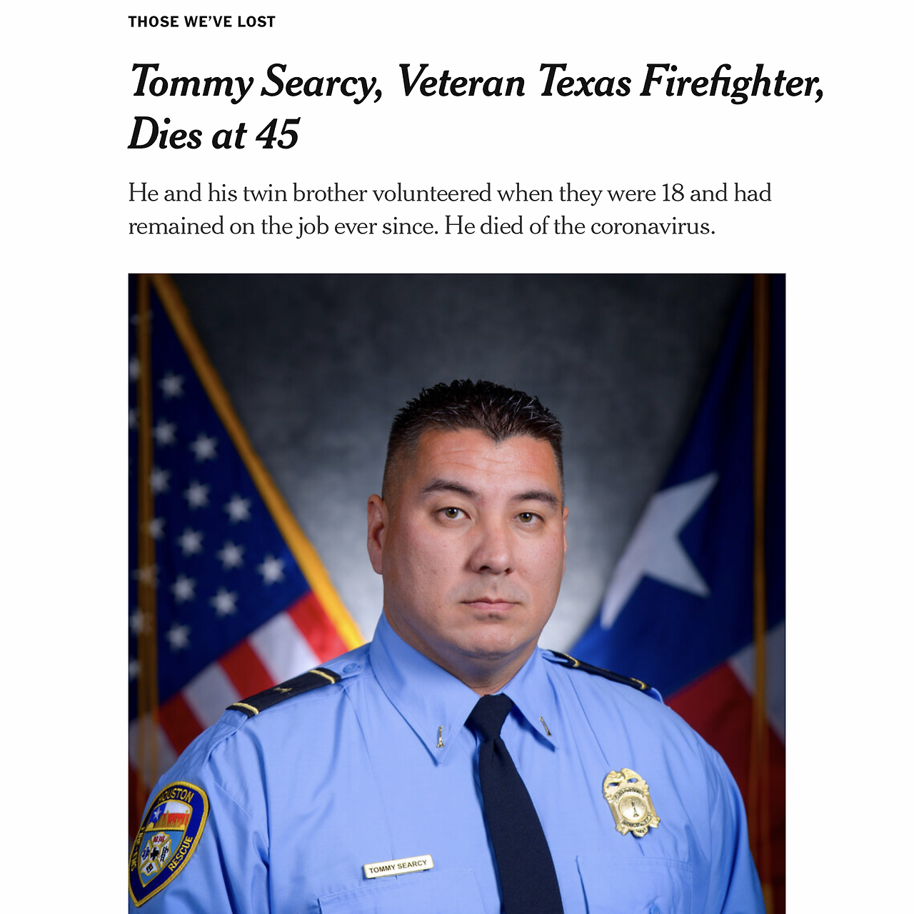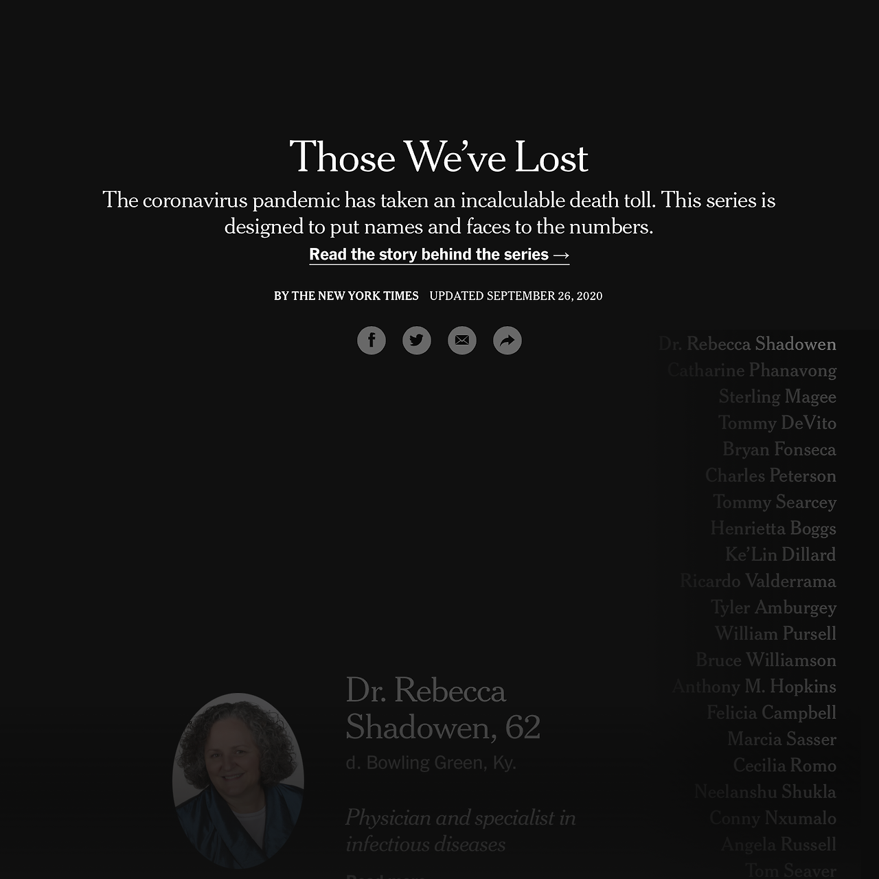 오늘 뉴욕타임스 앱을 열어 기사를 보는데, 좀 눈에 띄는 타이틀이 있었습니다. 읽어보니, 코로나 바이러스 때문에 돌아가신 분들에 대한 이야기더군요.