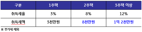 ③ 2 주택 소유자가 비조정대상지역 주택 취득 시 : 8% <행정안전부 보도자료(2020.7.31) 재구성>
