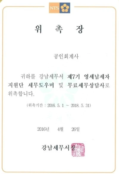 나는 회사에서 가까운 세무서인 강남세무서로 지원을 하였고, 2016년 5월부터 한 번의 연임을 하면서 2020년 5월 말까지 총 4년간 활동을 하였다.