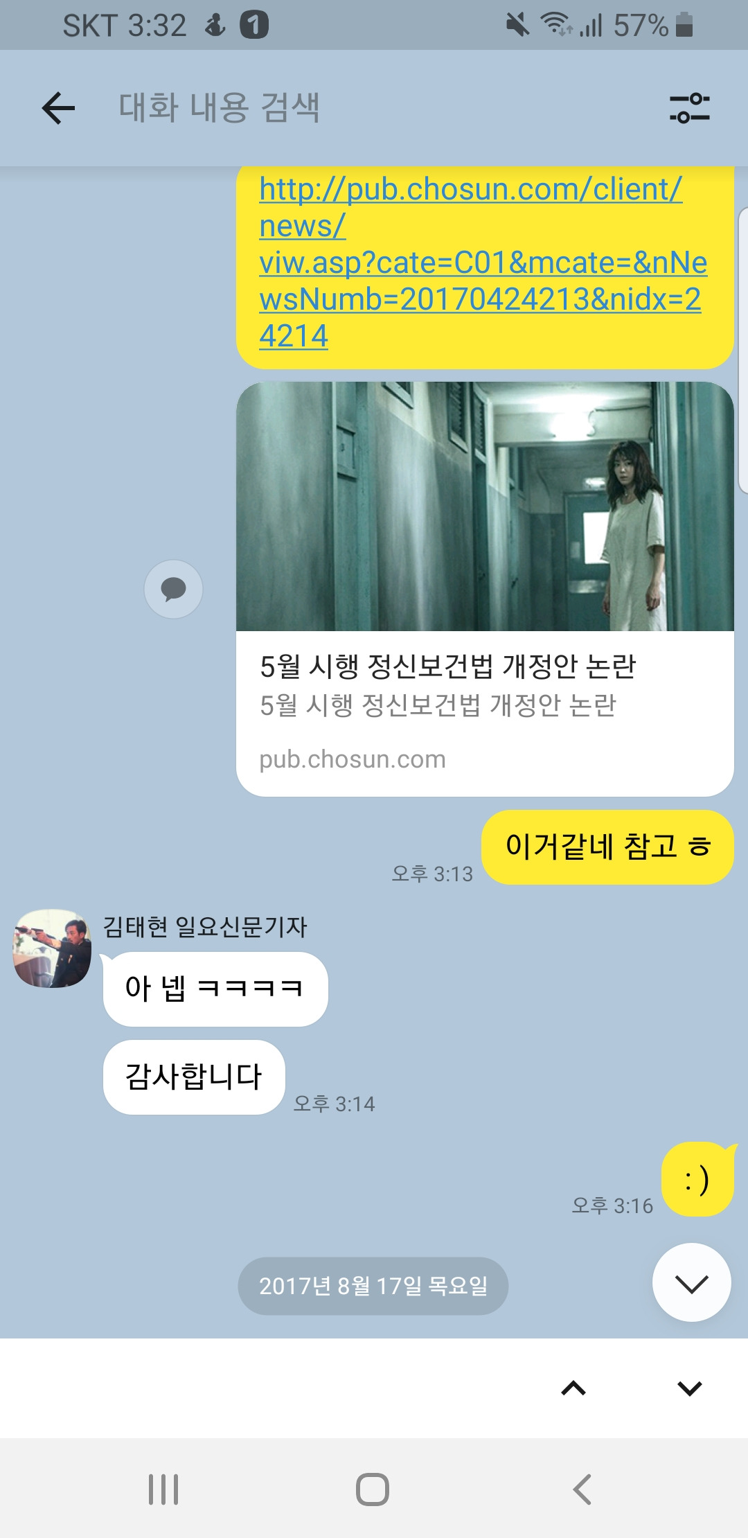 2017년 8월에 친한 후배기자가 아까 밥먹을때 형이말한 내용을 보내달라고 했다.