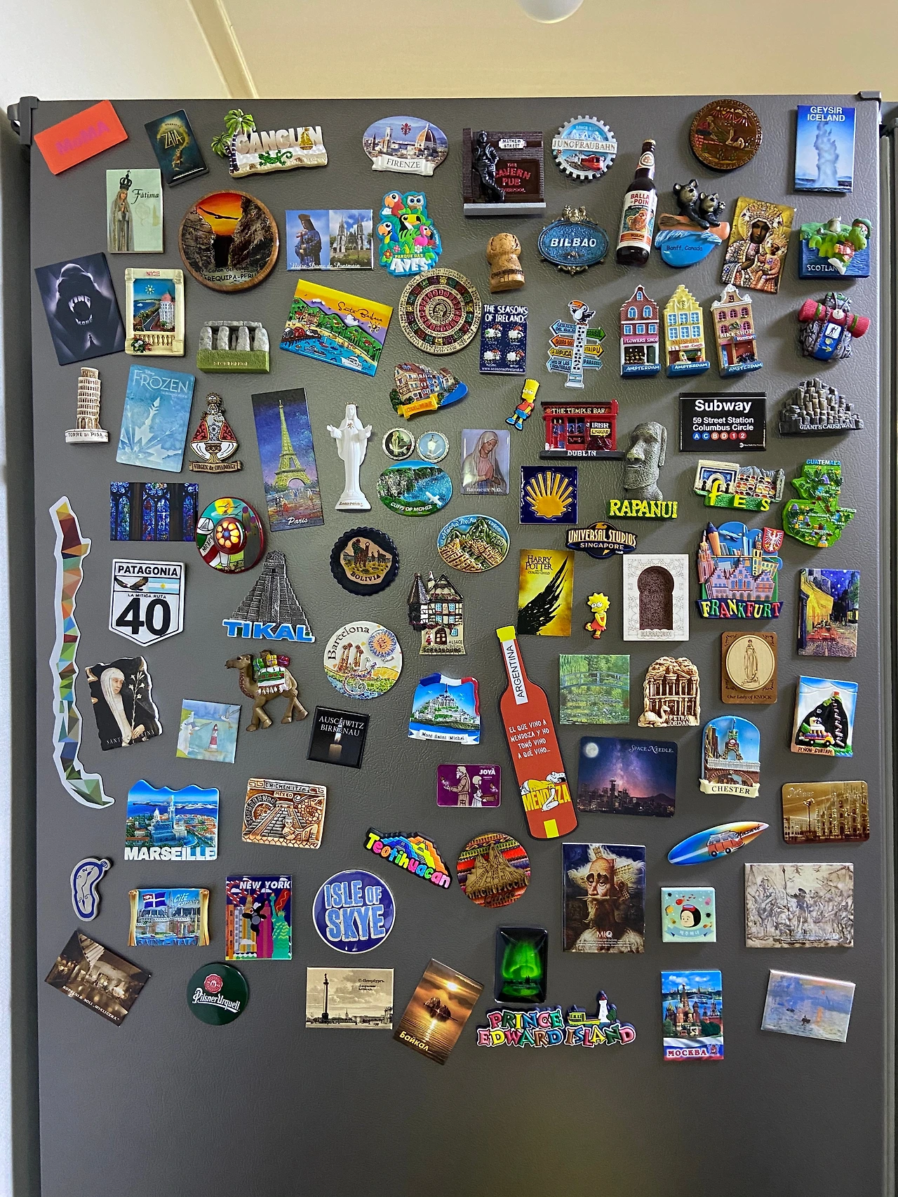 그렇게 열심히 열심히 모은 우리의 여행 기념품 자석들은 우리 집 냉장고 3면을 장식해주고 있다.