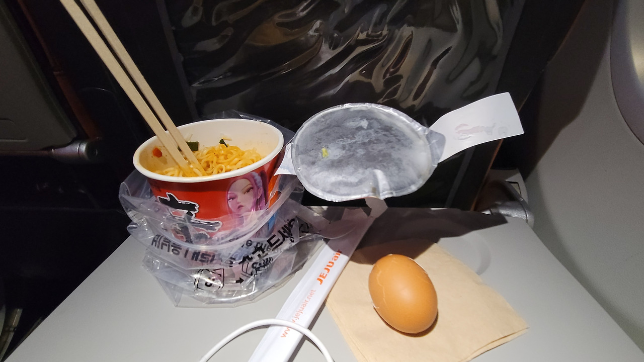 얼마나 잤을까. 자고 일어나니 기내식으로 주문하신 라면이 내 앞에 놓여 있었다.