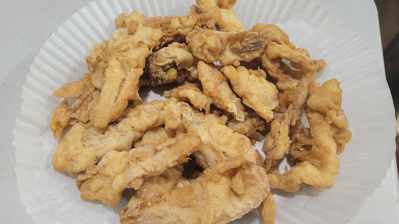 포장해 온 피상고랭을 에어프라이어에 덥혀 먹으며