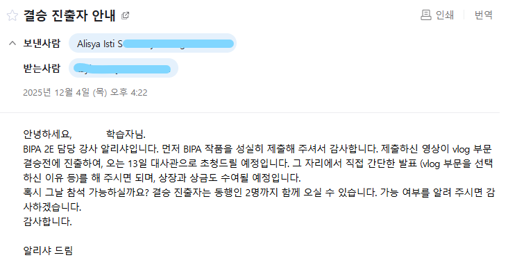 대사관 초청? 결승전 진출??