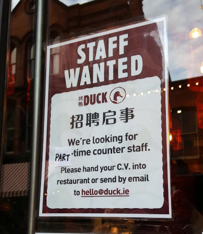 'STAFF WANTED'라고 써 붙인 가게들이 있었다.