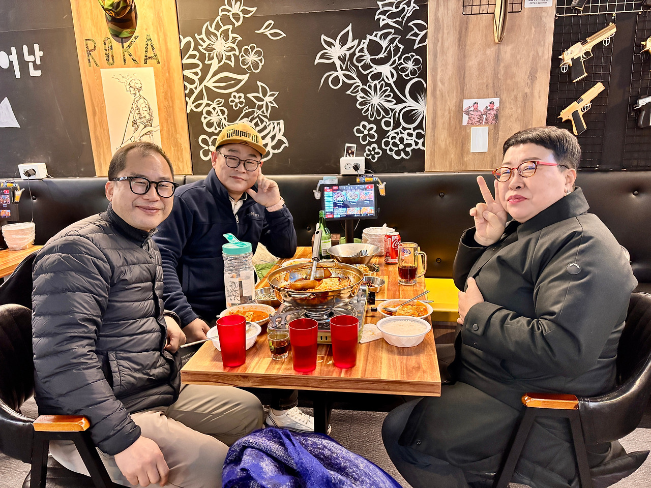이들의 동해 방문은 동해 대동 철길에 위치한 국민포차 ‘취사병’에서 절정에 달했다. 최근 개시한 ‘공장촌 돼지탕’은 대화의 또 다른 주제가 되었다. 돼지탕을 한 숟가락 떠먹으며 김 단장은 깊은 만족감을 드러냈다.